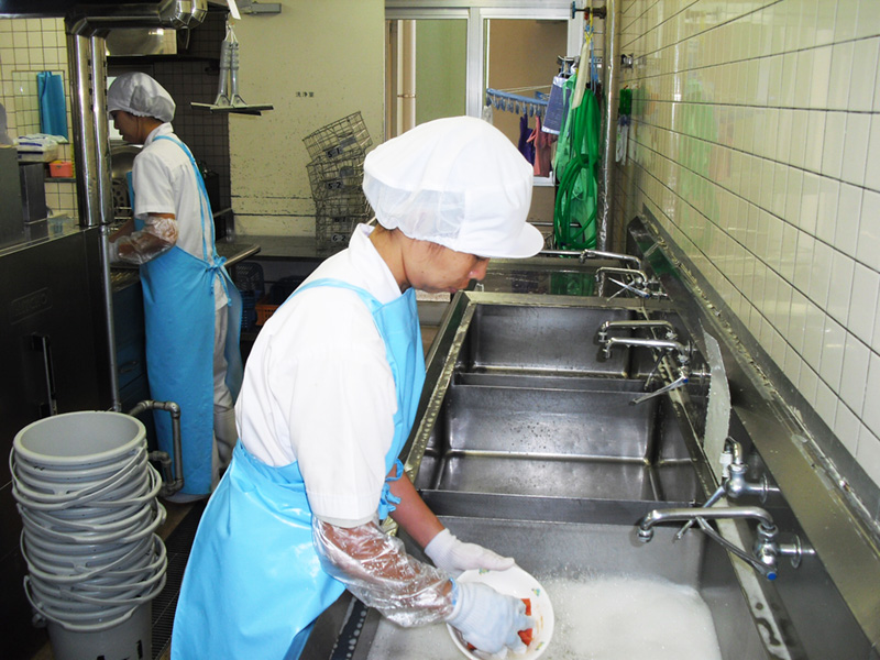 市川市内中学校調理室内での午後洗浄業務です。主な業務内容・食後の食器類回収・調理器具、食器類洗浄・調理室内や休憩室の清掃・ゴミ捨て 等